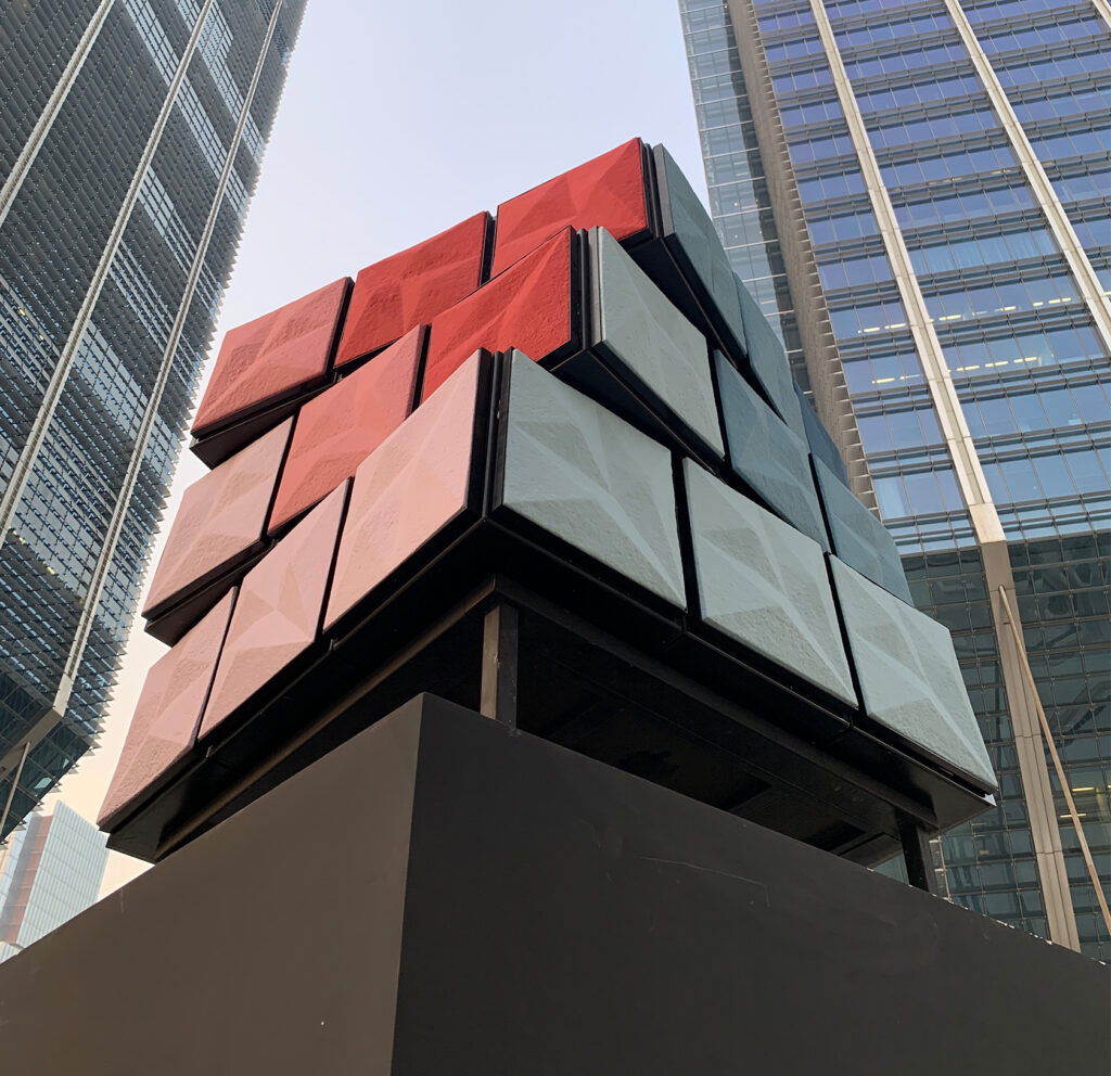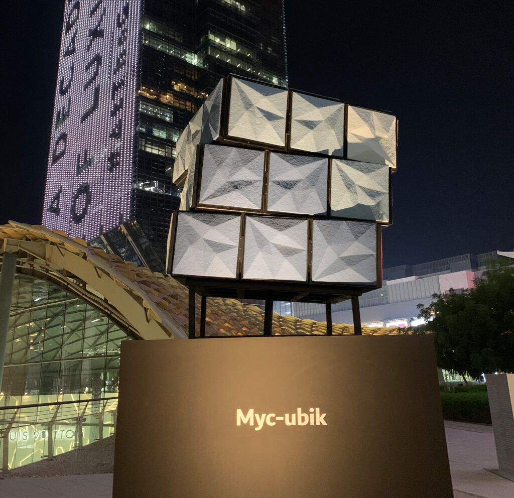 Myc-ubik was installed twice; once as an installation at Quoz Art Fest in Alserkal Avenue in Dubai, and once more to become the first mycelium public art in the UAE to be displayed on Al Maryah Island in Abu Dhabi next to Abu Dhabi Global Market (ADGM).
