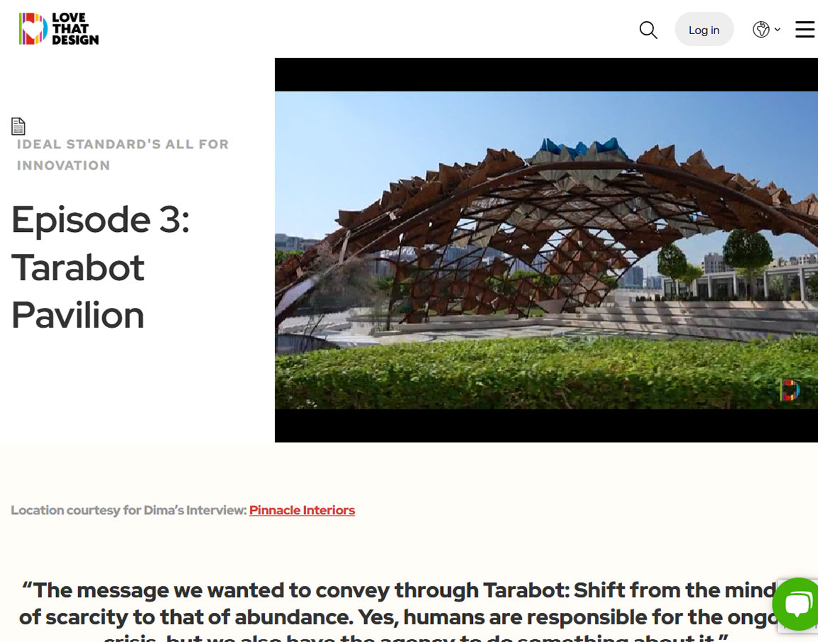 Tarabot is a pavilion that brings together cutting-edge sustainable materials designed and made in the UAE, weaving together the story of local materials throughout their full lifecycle. It creates synergies between the natural world and manmade environments.